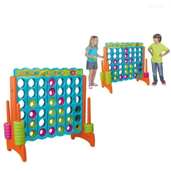 4 op een rij, wie is er niet mee opgegroeid? Speel 4 op een rij tegen tegen elkaar in XXL formaat. Laat de schijven in de juiste rij vallen en zorg er voor dat je vier van je eigen schijven op een rij krijgt.