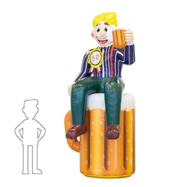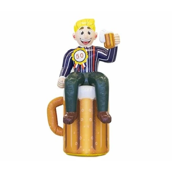 Deze Abraham pop heeft een biertje in zijn hand en zit er gezellig bij op een bierglas. Een leuke opblaaspop voor een verjaardag of om iemand te verrassen.