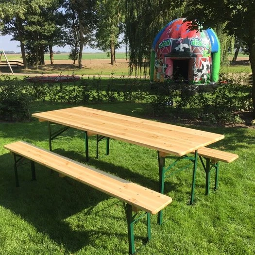 Deze biertafel sets bieden plaats aan 8 tot 10 personen.