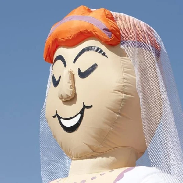 Het bruidspaar is maar liefst 3,8 meter hoog en 1,5 meter breed. Perfect dus voor de deur of op de trouwerij aan de straat.