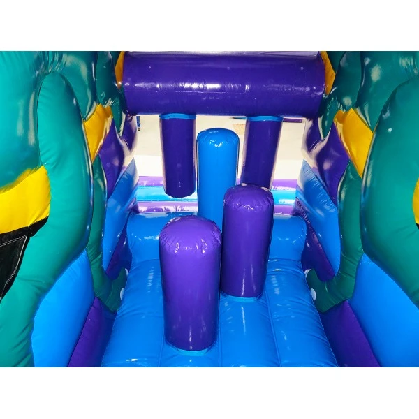 Klimmen, spelen en glijden; deze toffe Dino Stormbaan heeft het allemaal! Binnenin het kussen bevinden zich diverse obstakels en de unieke vorm van deze stormbaan maakt het thema helemaal compleet.