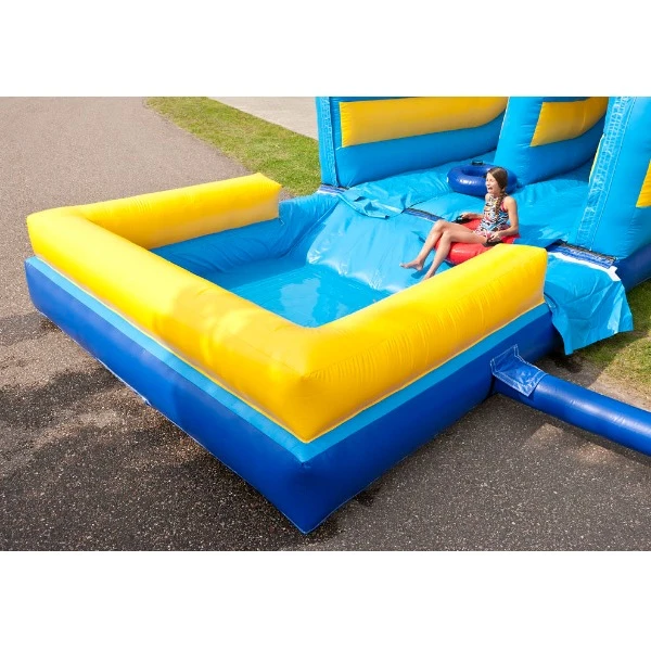 Het kussen is te huren met een plonsbad, ideaal voor de warme dagen of met multiplay voor een droge landing.