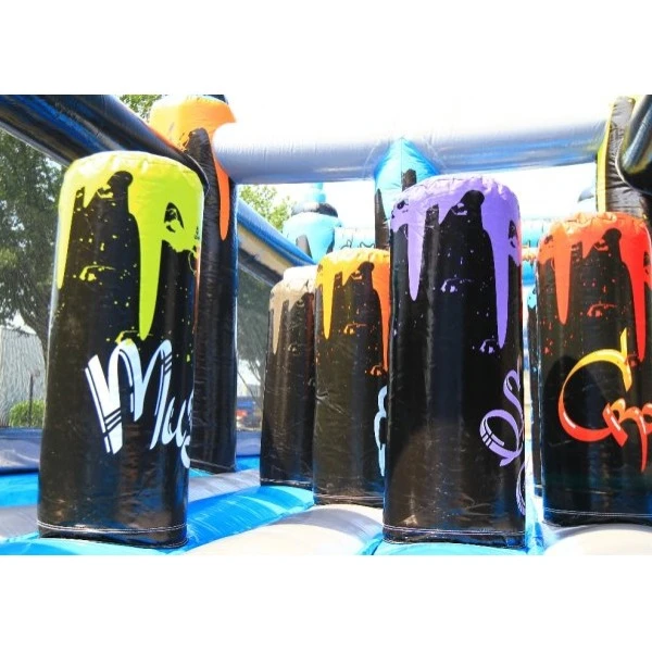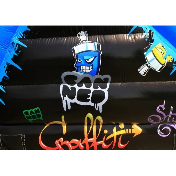 Deze toffe stormbaan in graffiti thema is erg kleurrijk en beschikt over diverse obstakels verdeeld over de hindernisbaan. De stormbaan is voorzien van toffe prints van spuitbussen, tekeningen en tags.