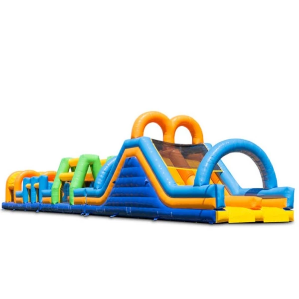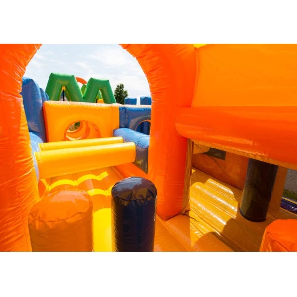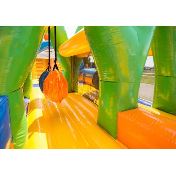 Deze 27 meter lange stormbaan geleverd in vrolijke kleuren is perfect voor jong en oud. Deze grote stormbaan gaat kinderen of volwassenen een spannende en super leuke dag bezorgen! Laat ze vliegensvlug kruipen, rennen, springen, klimmen en glijden op deze dubbele parcours grote stormbaan van 27 meter. Wie bereikt als eerste de overkant van deze opblaasbare hindernisbaan? De dubbele stormbaan biedt extra vermaak doordat er niet één, maar twee afzonderlijke banen zijn aangebracht en is voorzien van verschillende leuke obstakels in de stormbaan. Dit wordt 1 groot feest!