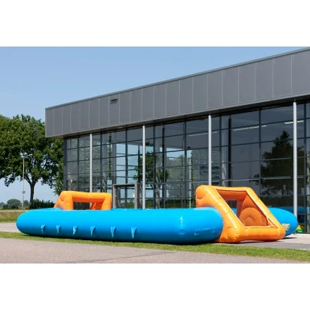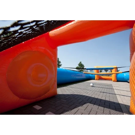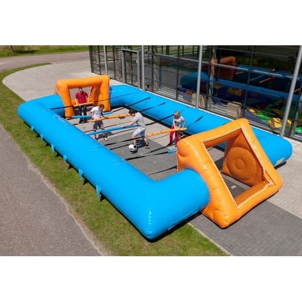 Dit leuke, sportieve levend tafelvoetbalspel is gebaseerd op het tafelvoetbalspel, maar het leuke aan dit spel is dat de spelers de levende voetballers zijn! Je zit met een handvat vast aan de “stangen” binnen de boarding.