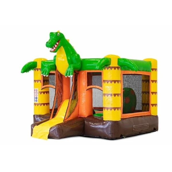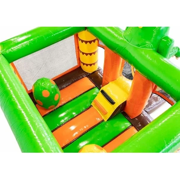 Dit compacte kussen in Dino thema past in vrijwel iedere achtertuin of oprit. Ideaal, want zo is dit springkussen al snel overal te plaatsen.