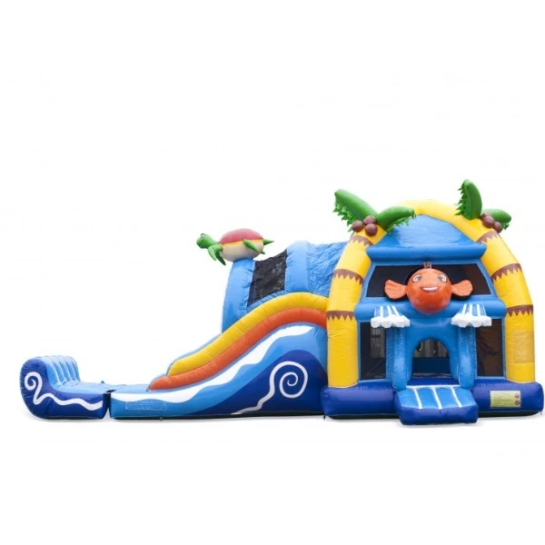 Beleef urenlang speelplezier met dit grote super Nemo springkussen met zwembad! Het kussen is zeer uitgebreid met pilaren op het springvlak en de dubbele glijbaan maakt het kussen helemaal af!