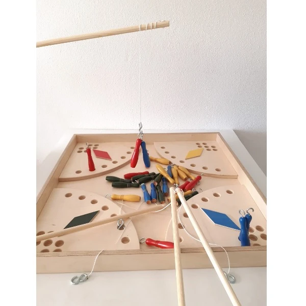 De bedoeling is om met 2,3 of 4 spelers tegen elkaar strijden en wie als eerste al zijn pionnen in de kwartcirkel hengelt, wint. Met de hengel vis je een pion op en plaatst deze in de kwart cirkel. Indien een speler een pion laat vallen, moet de pion op de beginpositie worden teruggeplaatst.