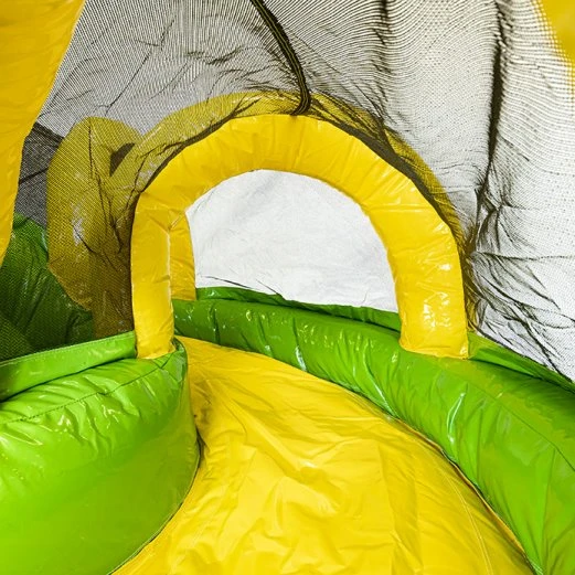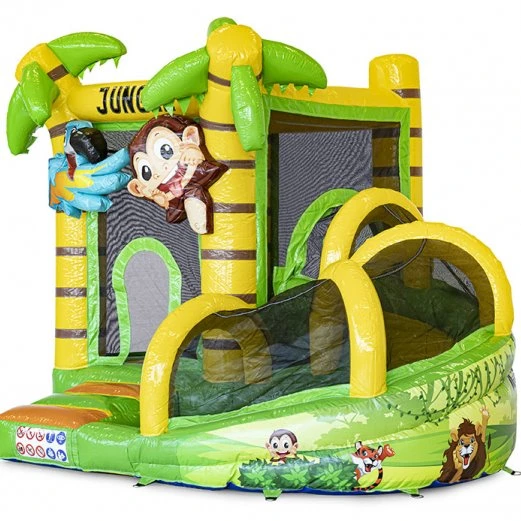 Dit vrolijke en compacte springkussen met Jungle thema is te huur en ideaal voor de kleinere kinderen. Dankzij het springvlak, gecombineerd met de originele ronde glijbaan, zullen kinderen met veel plezier springen en glijden! Uniek aan de Mini met Slide is de glijbaan die aansluit op de opstap. Kinderen kunnen makkelijk het springkussen weer in en krijgen geen vieze voeten.
