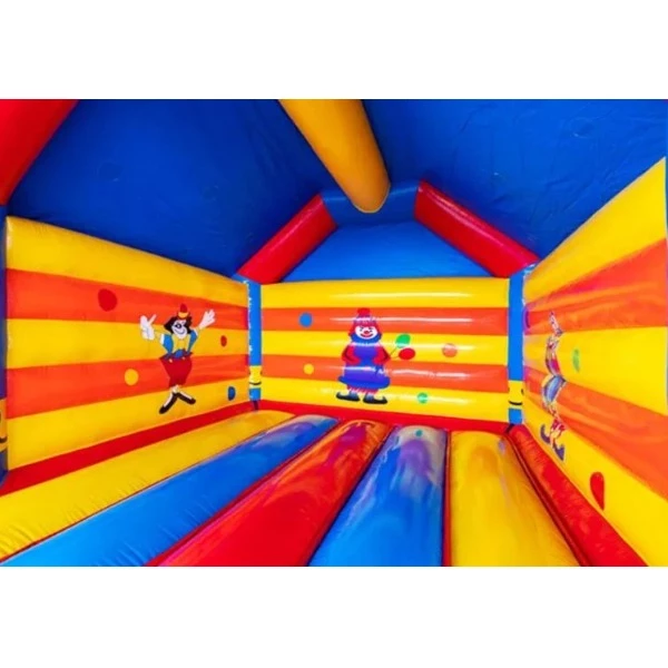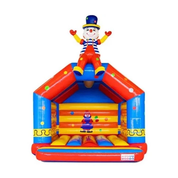 Welkom in het circus! Geef jouw feest of evenement een vrolijke circusboost met dit kleurrijke springkussen! De grote zittende clown op het dak is niet te missen en trekt direct de aandacht.