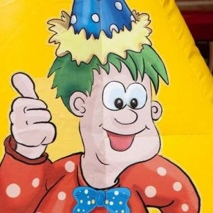 Het springkussen in Feestthema heeft een mooie full colour print met toffe tekeningen, wat het springkussen een geweldige uitstraling geeft. De vrolijke kleuren oranje, groen en geel maken dat het feestelijke thema helemaal tot leven komt.