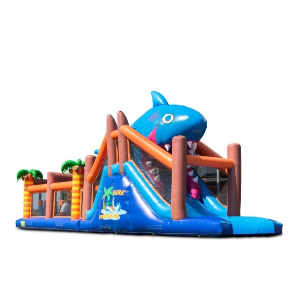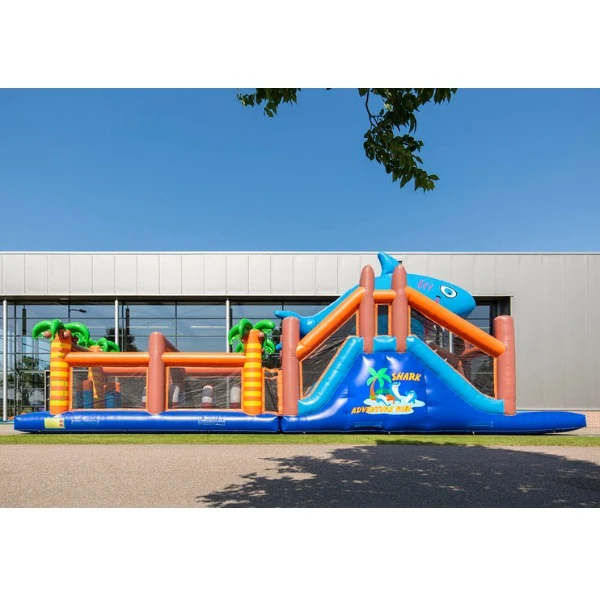 Bezorg kinderen de dag van hun leven met deze unieke stormbaan met haai thema! Wie van de twee spelers weet het snelste de obstakels te overwinnen over deze 17 meter lange stormbaan?