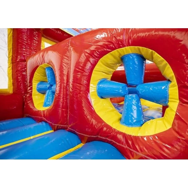 Onze 13,5 meter lange stormbaan Rollercoaster is een ware eyecatcher! Zin in een wedstrijdje? Kruip, ren, spring, klim en glijd over het dubbele parcours in Rollercoaster thema en finish als eerste door van de glijbaan de stormbaan Rollercoaster te verlaten. De 3D-objecten in de stormbaan passen goed bij het thema en binnenin het kussen bevinden zich allerlei obstakels.